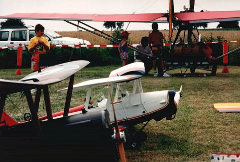 Im Vordergrund Alexander`s S.E. 5a, dahinter meine Tiger Moth Aufnahme vom Flugtag in Gerolzhofen 1990
