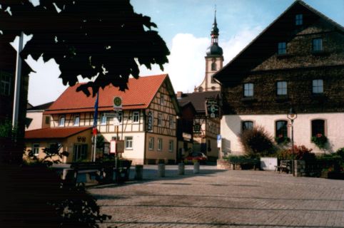 Marktplatz mit "Trachtenstube" und Gasthof "Am Markt" Aufnahme vom Sommer 1999